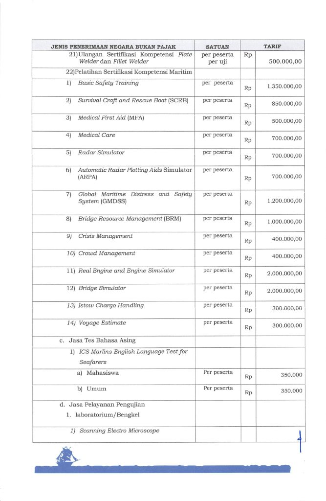 Tarif Diklat ditetapkan dalam Peraturan Direktur Politeknik Martim Negeri Indonesia (Polimarin) nomor 064/PL38/SK/2024 sebagai berikut :